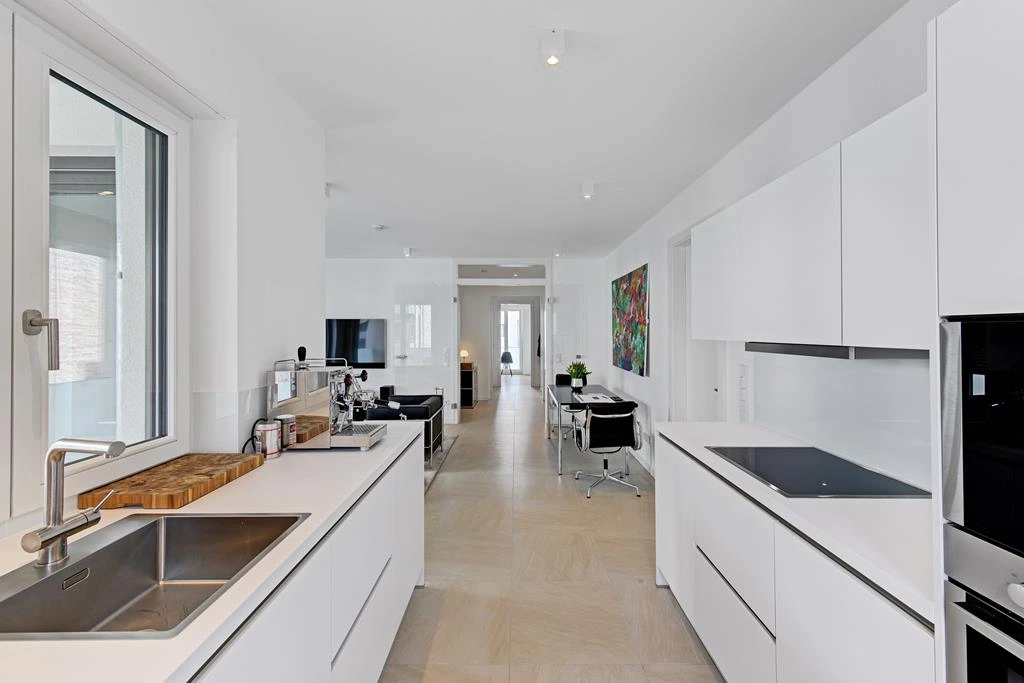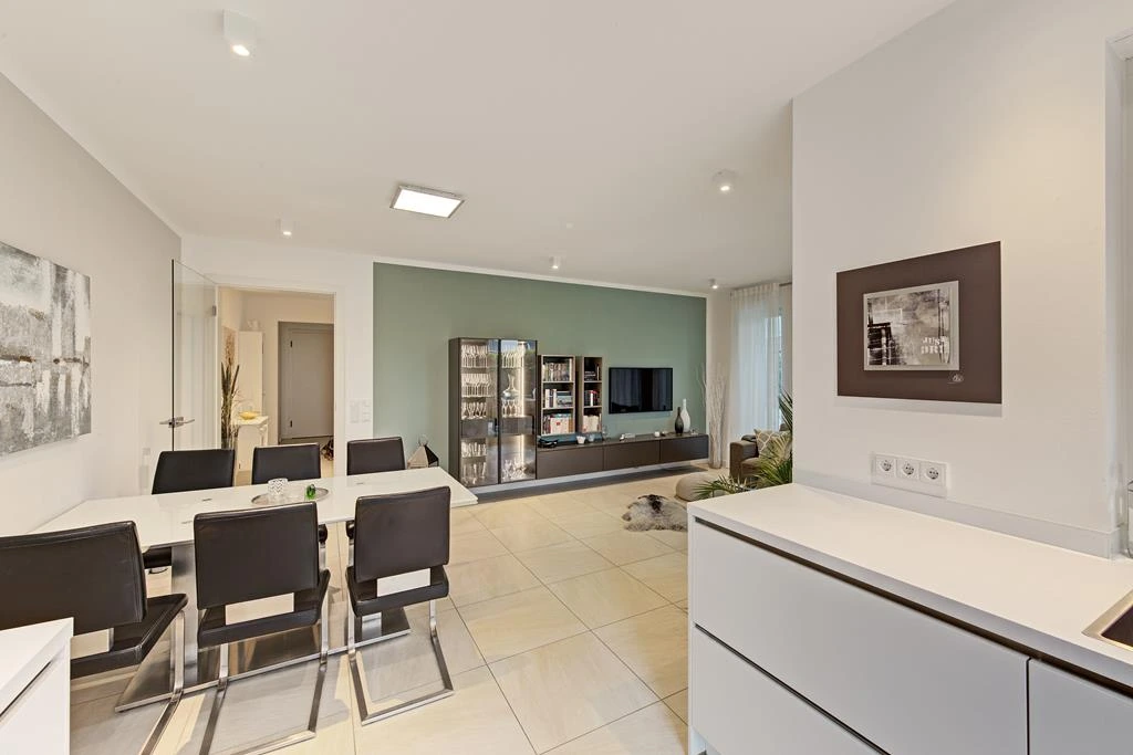 - Einbauküchen sowie entweder Parkett- oder Feinsteinzeugoberböden inklusive